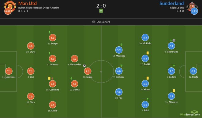 2.芒特首开纪录后,阿莫林非常平静,但谢什科扩大比分之后,他握拳怒吼庆祝。赛前英媒称若输桑德兰他可能会下课,但阿莫林暂时保住了自己的帅位。