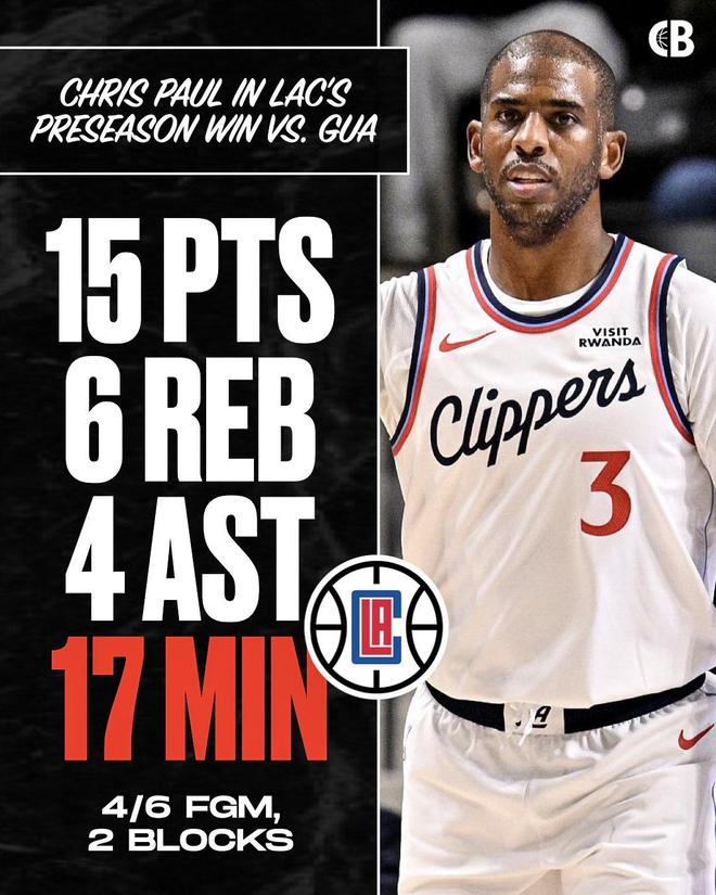 保罗首秀15+6,快船47分狂胜广州龙狮!小卡18分哈登9助半场打卡